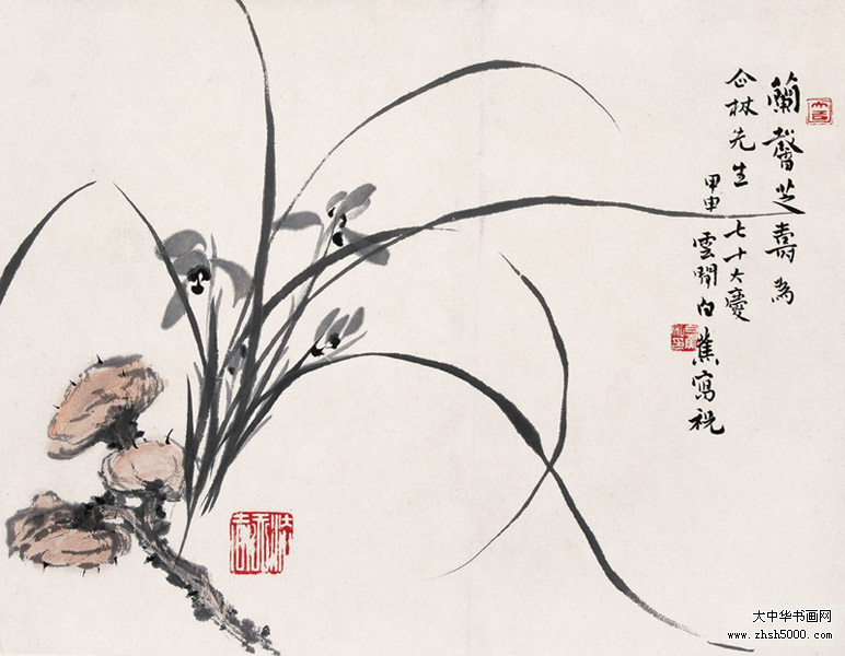 白蕉(1907—1969),上海金山人。本姓何,名治法,又名馥,字远香,号旭如,又署复翁、复生、济庐、海曲等,别号有云间居士、束海生、法天者、养鼻先生、不出不入翁、仇纸恩墨废寝忘食人等。曾为上海中国画院筹委会委员兼秘书室副主任,中国美术家协会上海分会会员,上海中国画院画师、上海中国书法篆刻研究会专职干部。能篆刻,精书法,亦擅长画兰,能诗文。